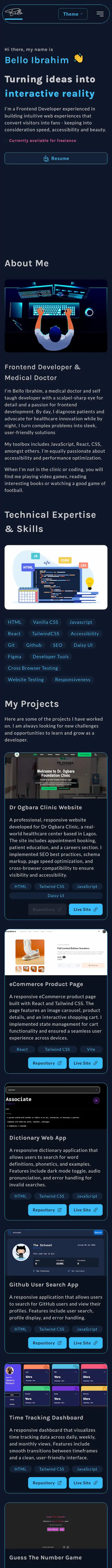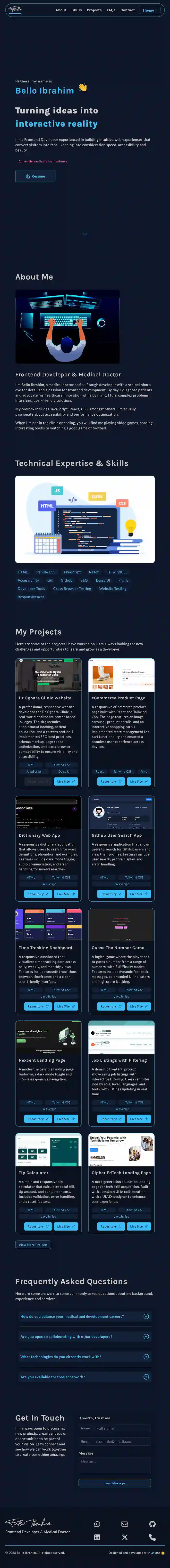 A modern, high-performance portfolio website built for a frontend developer in Lagos to showcase projects, skills, and attract potential clients and employers.